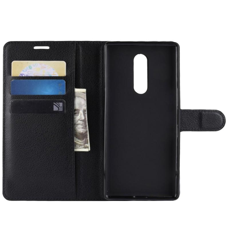 - A bolsa carteira Sony Xperia 1 é feita de poliuretano e material TPU
