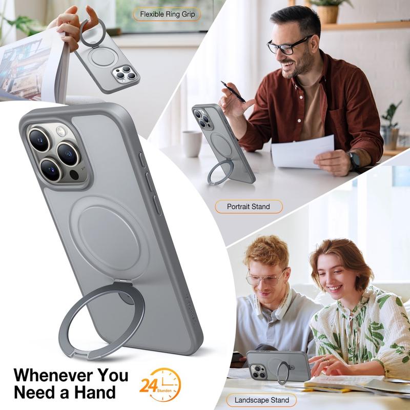 Capa Torras Upro Ostand Matte para iPhone 15 Pro Max - Punho MagSafe, suporte para pontapés integrado, proteção antiqueda
