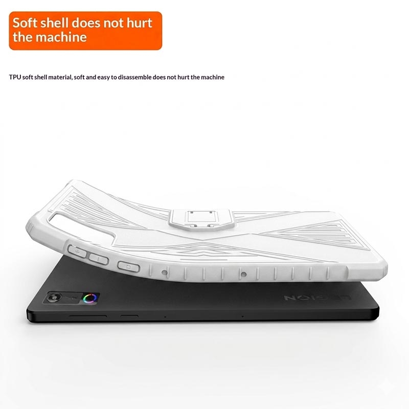 A capa TPU à prova de choque com suporte para PC para o Lenovo Legion Y700 (Gen 5) oferece uma proteção robusta e comodidade para o seu dispositivo. Fabricada em material TPU durável, proporciona uma excelente absorção de choques e resistência ao impacto. O suporte para PC integrado permite a leitura com as mãos livres, tornando-a ideal para utilização em casa, no escritório ou em viagem.