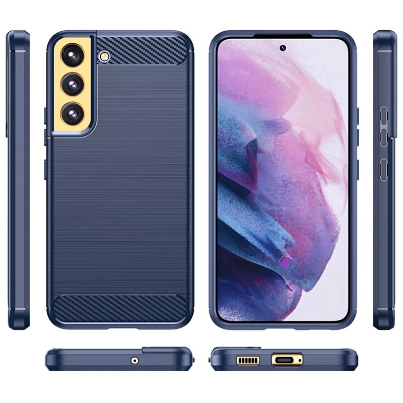 Capa de TPU Brushed para Samsung Galaxy S22 5G - Fibra de Carbono - Azul