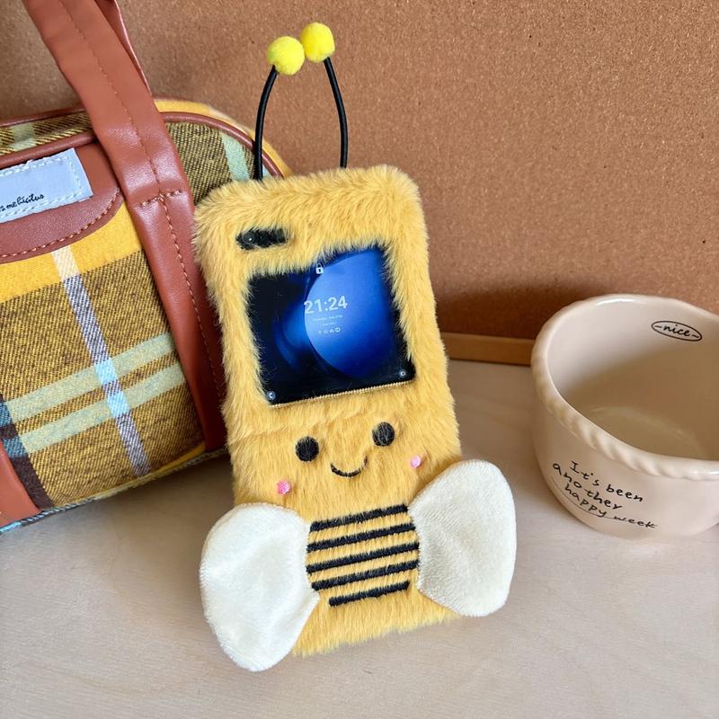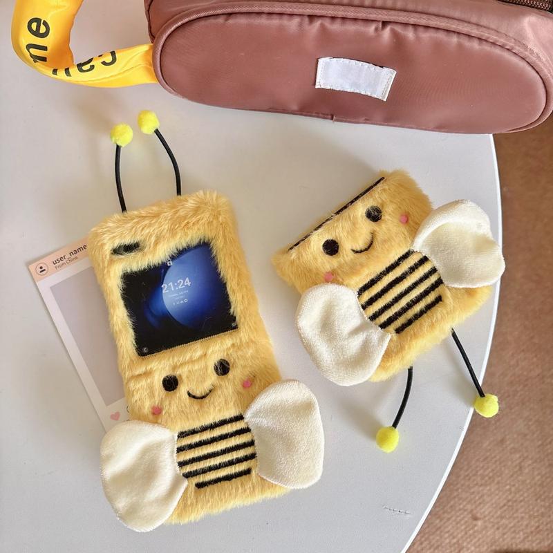 - Acessório de moda elegante: Com o seu padrão de abelha e textura de pelúcia, esta capa funciona como um acessório elegante para utilizadores que adoram designs únicos.