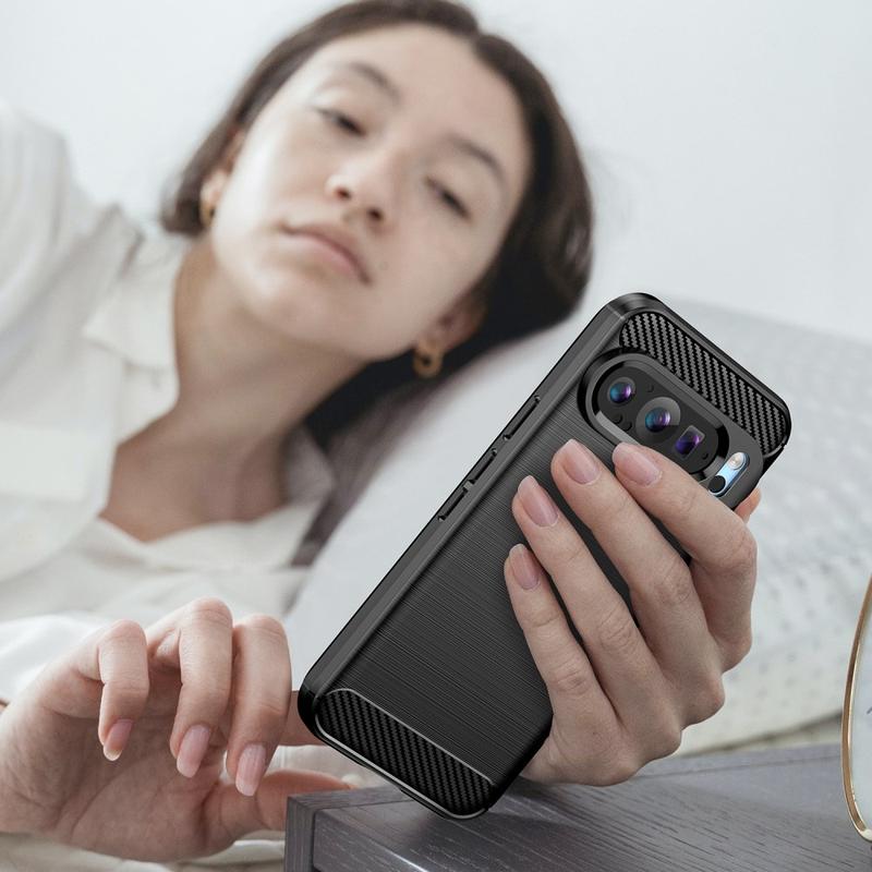 Capa de TPU Escovado para Google Pixel 9, Pixel 9 Pro - Fibra de Carbono
