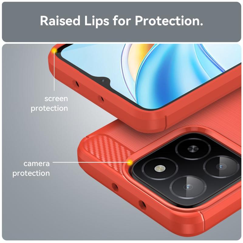 Capa de TPU Escovado para Honor X5b/X5b Plus - Fibra de Carbono - Vermelho