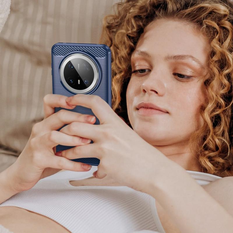 Capa de TPU Escovado para Huawei Mate 70 Pro, Mate 70 Pro+ - Fibra de Carbono