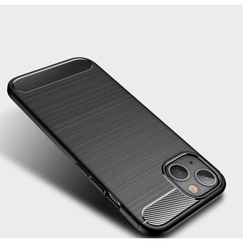 - Capa de TPU escovado com textura de fibra de carbono para o iPhone 13 Mini