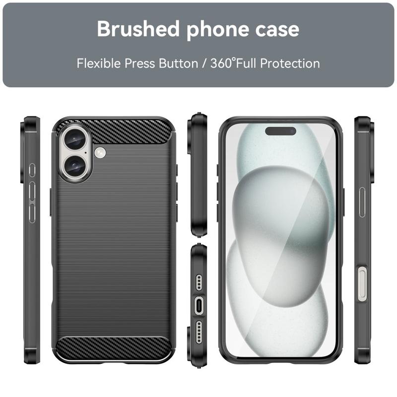 Capa de TPU Escovado para iPhone 16 Plus - Fibra de Carbono
