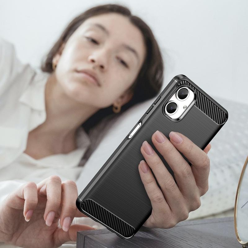A capa de TPU escovado protege adequadamente o seu Samsung Galaxy A06 outorgando-lhe um grande estilo, graças ao seu padrão de fibra de carbono na parte de trás. A capa também protege contra o sobreaquecimento ao utilizar o seu Samsung Galaxy A06, com o seu design que facilita a dissipação de calor.