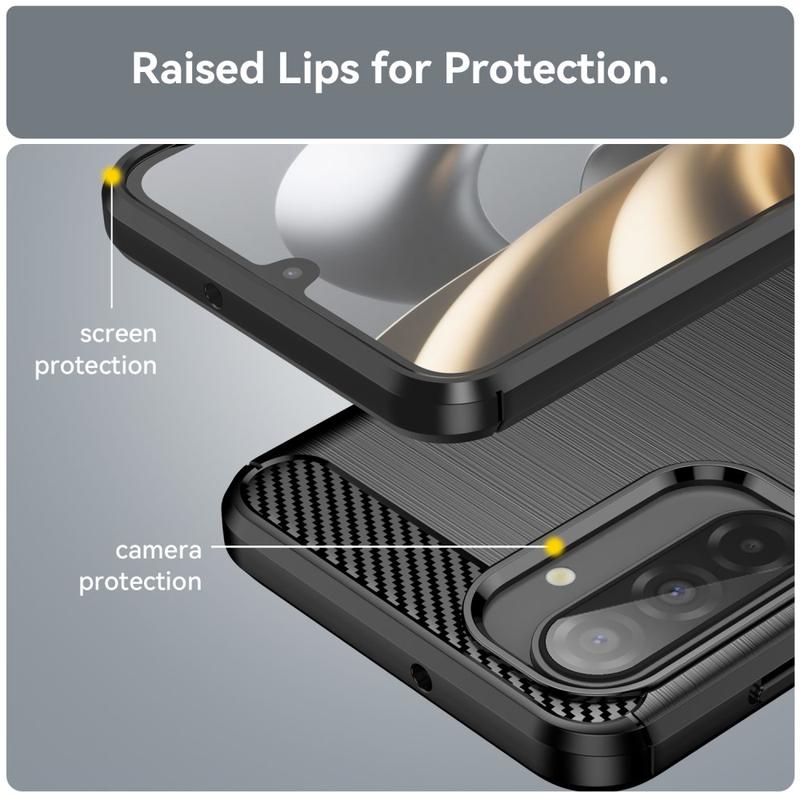 Dê ao seu Samsung Galaxy A17 a proteção elegante que merece com esta capa com textura de fibra de carbono escovada. Combinando um elegante acabamento escovado com um design protetor resistente, protege o seu dispositivo contra impactos e riscos diários, proporcionando uma aderência confortável.