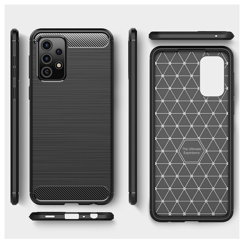 Salvaguarde o seu Samsung Galaxy A52 5G, Galaxy A52 4G, Galaxy A52s 5G de danos indesejados e quedas, com esta moderna capa em TPU escovado. Esta capa flexível possui pormenores chiques em fibra de carbono, que adicionam um elemento de estilo e modernidade ao aspecto do seu Samsung Galaxy A52 5G, Galaxy A52 4G, Galaxy A52s 5G.