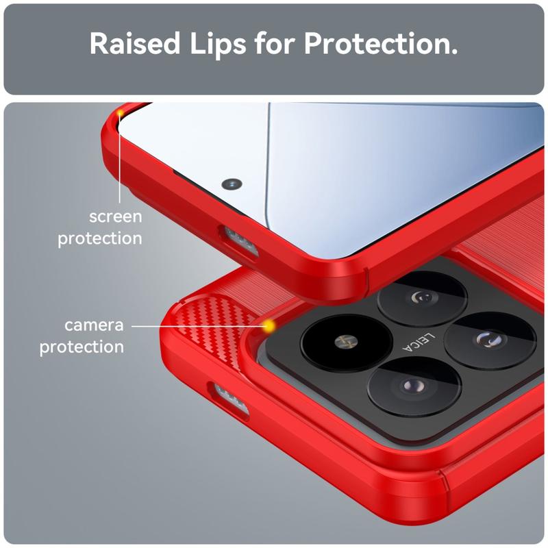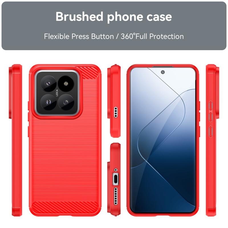 Capa de TPU Escovado para Xiaomi 14 Pro - Fibra de Carbono - Vermelho