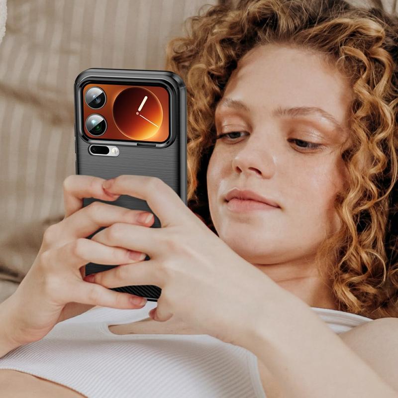 Capa de TPU Escovado para Xiaomi 17 Pro Max - Fibra de carbono