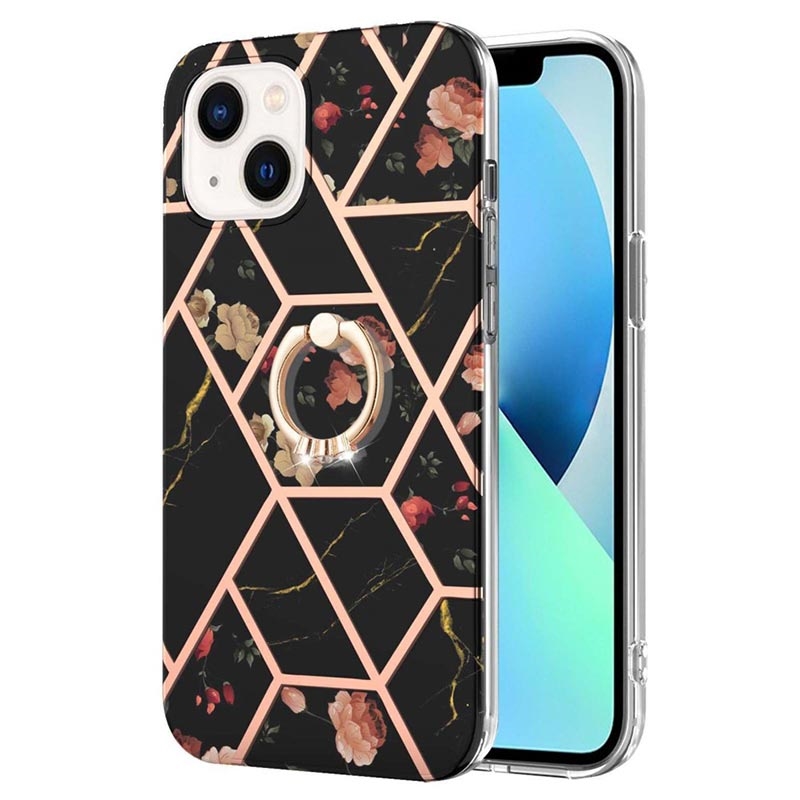 Capa de TPU Marble Pattern IMD para iPhone 15 Plus com Suporte de Anel