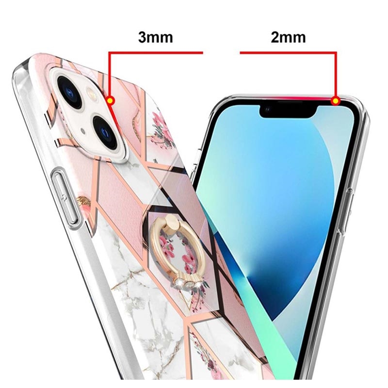 Capa de TPU Marble Pattern IMD para iPhone 15 Plus com Suporte de Anel
