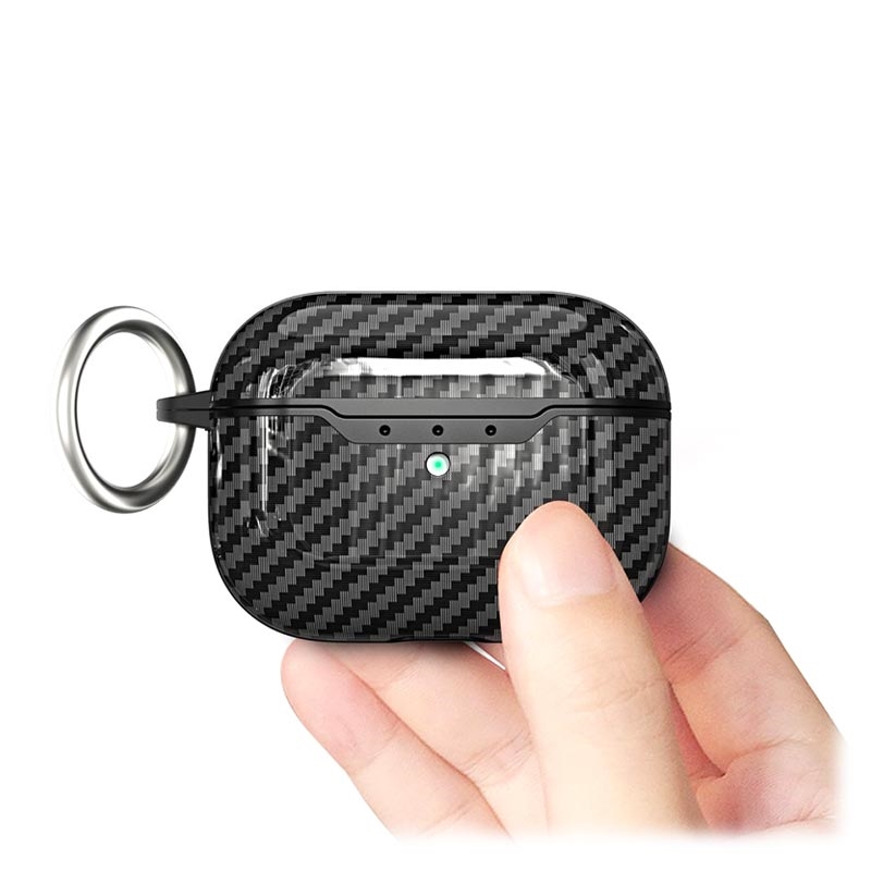 Capa de TPU com mosquetão para AirPods Pro 2 - Fibra de carbono