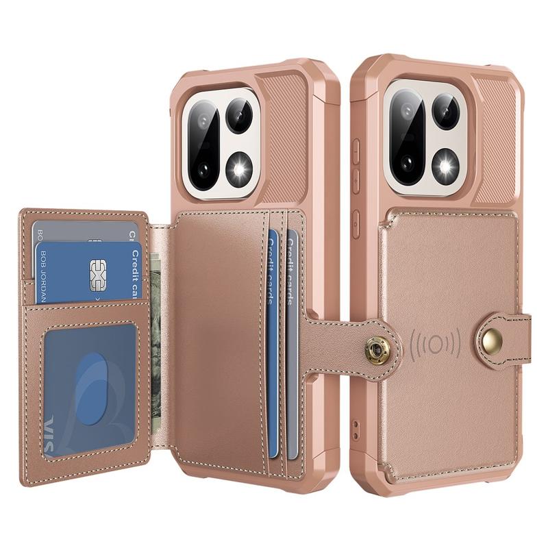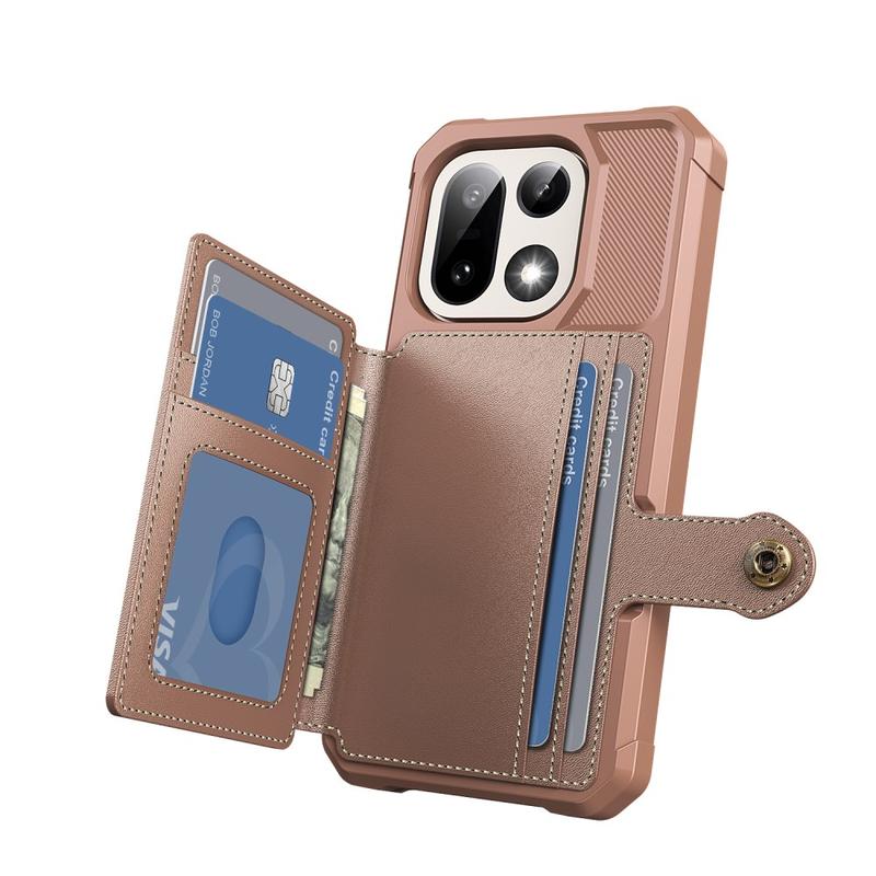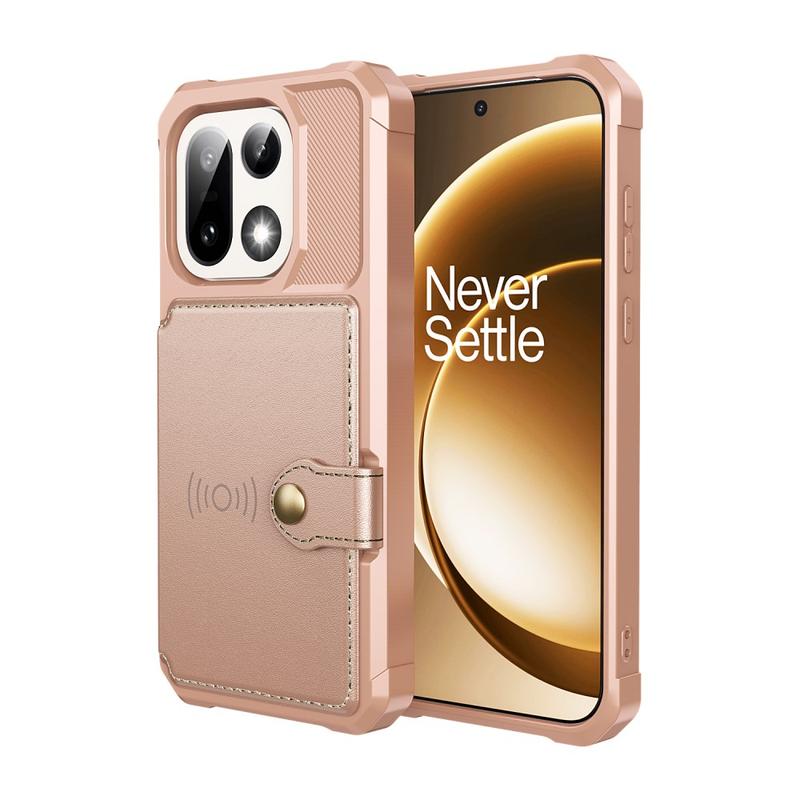 - Bolsa tipo carteira para OnePlus 15 com fecho que consiste num seguro botão de pressão, design de carteira e vários compartimentos para cartões e um bolso para dinheiro