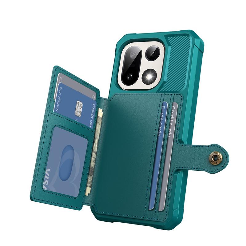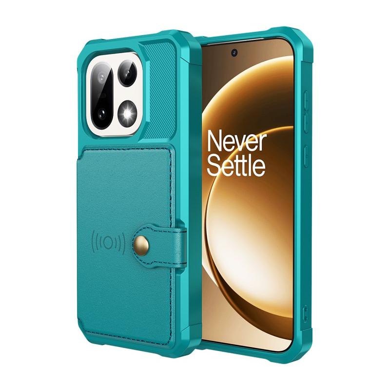 - Bolsa tipo carteira para OnePlus 15 com fecho que consiste num seguro botão de pressão, design de carteira e vários compartimentos para cartões e um bolso para dinheiro