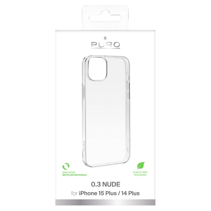 A capa 0,3 Nude da Puro protege o delicado acabamento do seu iPhone 15 Plus.