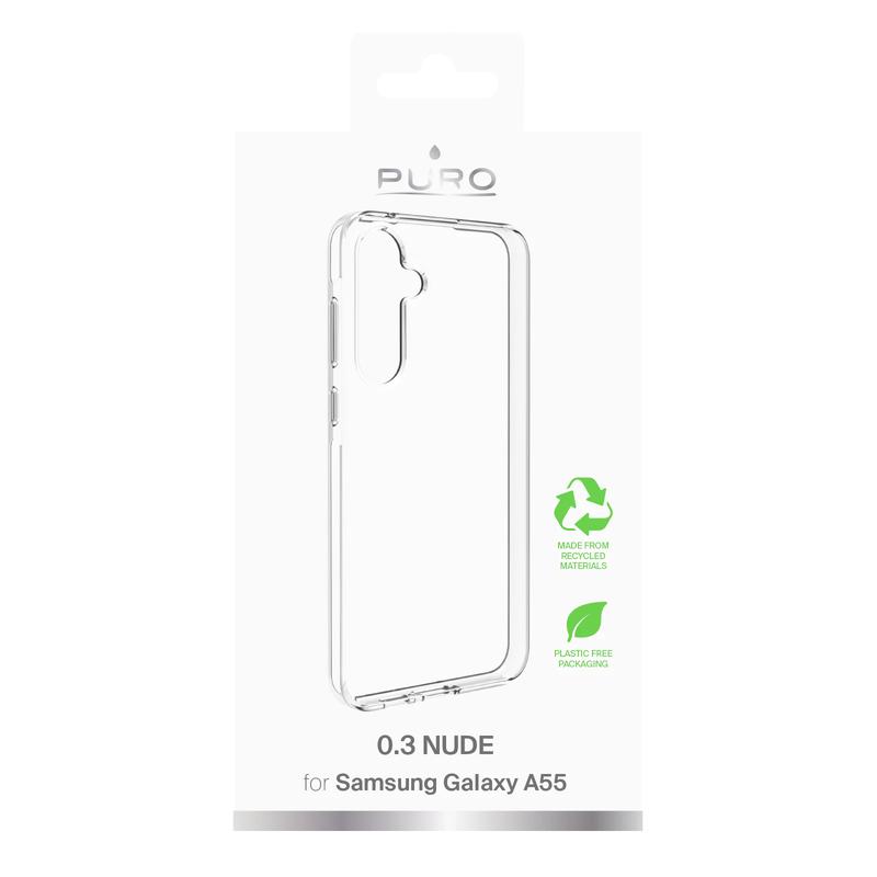 A capa 0,3 Nude da Puro protege o delicado acabamento do seu Samsung Galaxy A55.