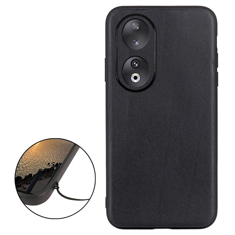 Estilize o aspeto do seu Honor 90 usando esta capa de TPU revestida com couro genuíno! As bordas em TPU protegem contra quedas e choques e a traseira revestida a couro delicado, resistente ao desgaste, contra arranhões, impactos e sujidade. Proteja o ecrã e a câmara graças às bordas elevadas à sua volta. Graças ao recorte de design único, poderá anexar o Honor 90 a um cordão de segurança (não incluído).