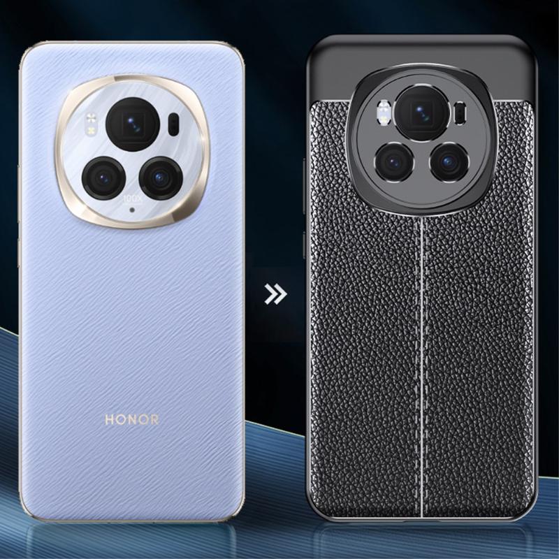 O material flexível absorve choques, mantendo o seu Honor Magic6 a salvo de amolgadelas e quedas. Além disso, a textura na parte de trás dá-lhe um aspeto elegante, fazendo sobressair o seu smartphone.