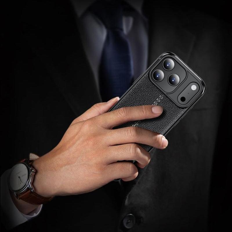 O material flexível absorve choques, mantendo o seu iPhone 17 Pro Max a salvo de amolgadelas e quedas. Além disso, a textura na parte de trás dá-lhe um aspeto elegante, fazendo sobressair o seu smartphone.