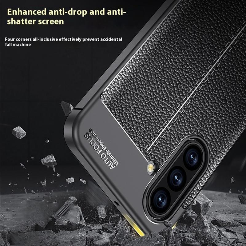 O material flexível absorve choques, mantendo o seu Samsung Galaxy A17 a salvo de amolgadelas e quedas. Além disso, a textura na parte de trás dá-lhe um aspeto elegante, fazendo sobressair o seu smartphone.