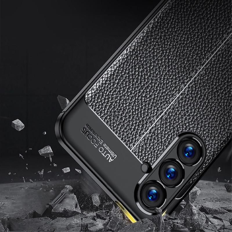 O material flexível absorve choques, mantendo o seu Samsung Galaxy S24+ a salvo de amolgadelas e quedas. Além disso, a textura na parte de trás dá-lhe um aspeto elegante, fazendo sobressair o seu smartphone.