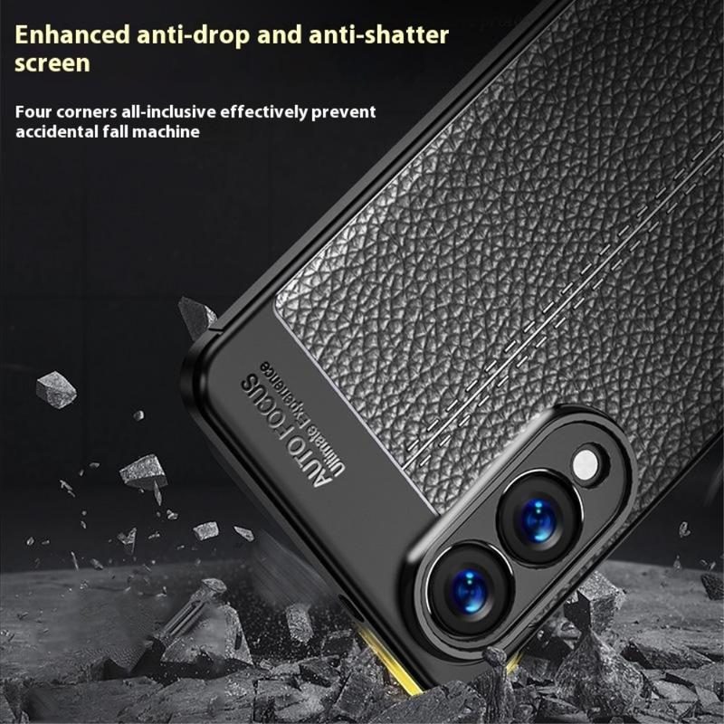 O material flexível absorve choques, mantendo o seu Samsung Galaxy S25 Edge a salvo de amolgadelas e quedas. Além disso, a textura na parte de trás dá-lhe um aspeto elegante, fazendo sobressair o seu smartphone.