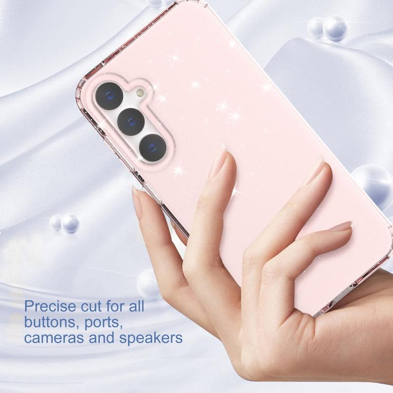 A atraente capa de TPU da Stylish Glitter Series fará com que seu Samsung Galaxy S23 FE realmente brilhe. Esta capa fina e leve é feita de material TPU flexível e durável que mantém seu Samsung Galaxy S23 FE protegido contra arranhões e amassados sem comprometimento. Um design transparente enriquecido com pó brilhante adicionará glamour ao seu Samsung Galaxy S23 FE.