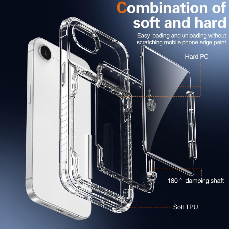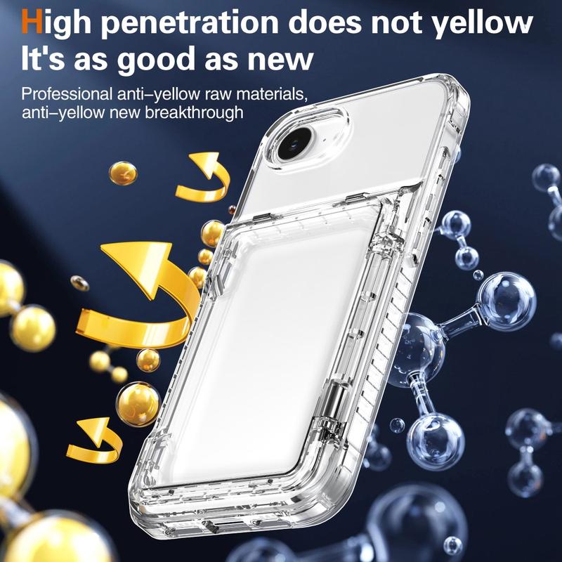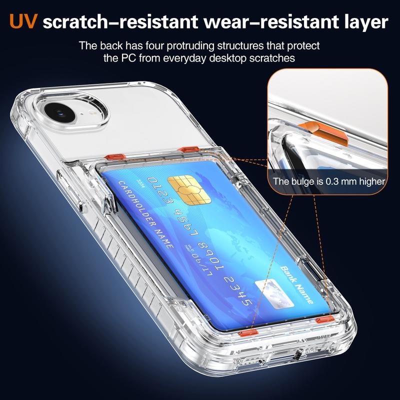 Esta capa híbrida para iPhone 16e oferece uma gama cuidadosa de recursos, mostrando a aparência original do seu iPhone 16e sem qualquer interferência. Proteção abrangente e excelentes propriedades de resistência a choques - isso significa que seu iPhone 16e pode suportar choques e quedas inesperadas. Além disso, o porta-cartões integrado na parte traseira é conveniente para armazenar dois de seus cartões essenciais, para que você possa tê-los sempre disponíveis sempre que precisar.