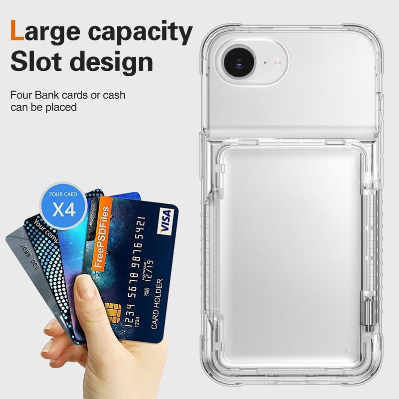 - Capa transparente exclusiva com porta-cartão para iPhone 16e