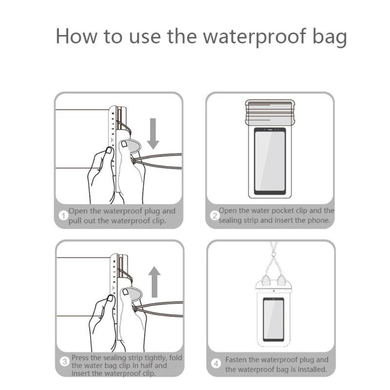 Perfeita para piscinas, praias, pesca, natação, vela, esqui, passeios de barco, caiaque, mergulho em apneia, tubagem, rafting, duche, sauna e outras actividades em parques aquáticos, mantém o telemóvel e a carteira perfeitamente secos e seguros