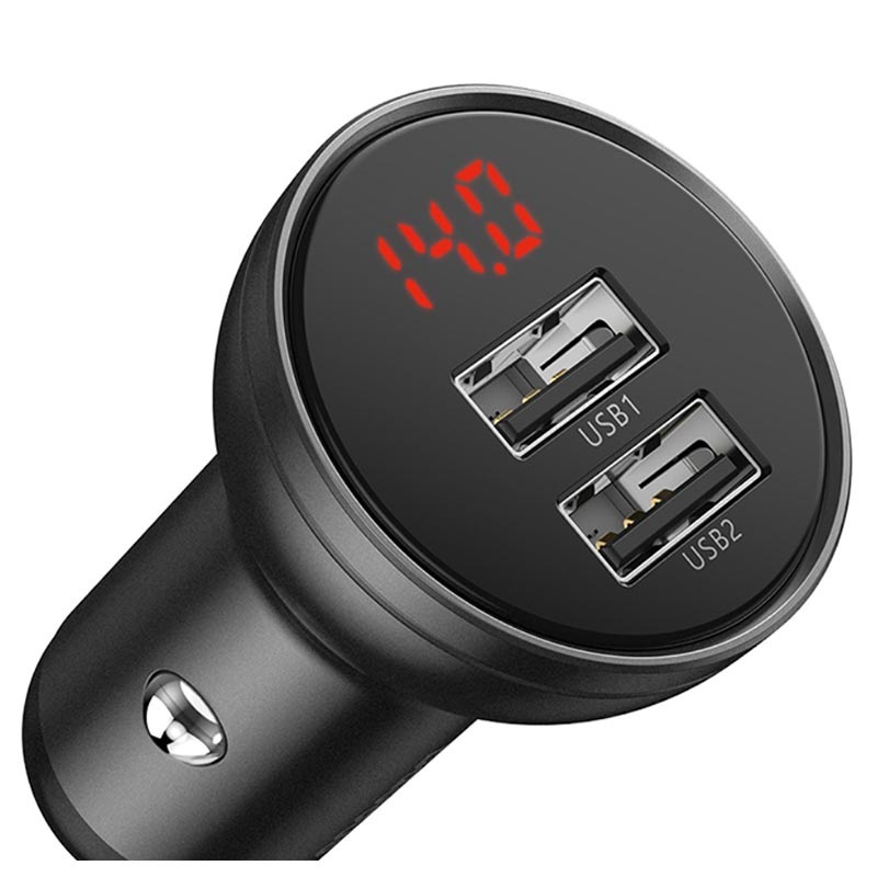Baseus Digital Display Dual USB Car Charger - 24W, 5V-4.8A