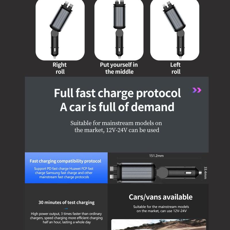 Condensa um carregador rápido de elevado rendimento, dois cabos retrácteis duradouros, um projetor de estrelas decorativo e um voltímetro de bateria num único dispositivo do tamanho da palma da mão - reduzindo a desordem, poupando tomadas e acrescentando estilo. Com protocolos PD/QC actualizados e compatibilidade total de 12 - 24 V, é uma atualização ideal para qualquer condutor da UE.