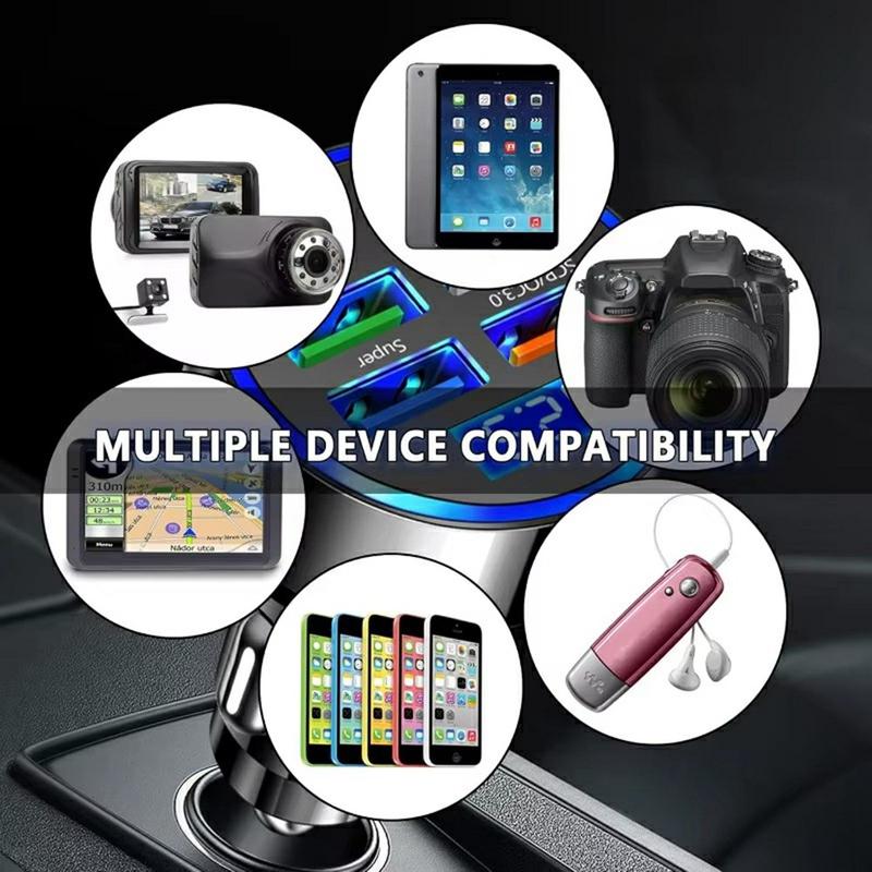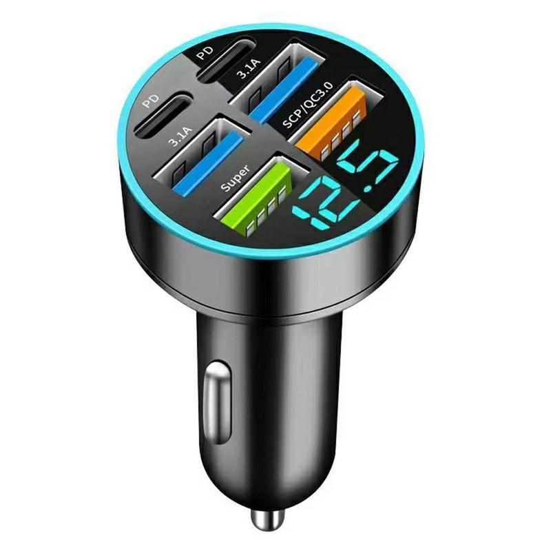 Carregador de automóvel de 6 portas de 100W - Adaptador de carregamento rápido PD e QC3.0 com ecrã de tensão