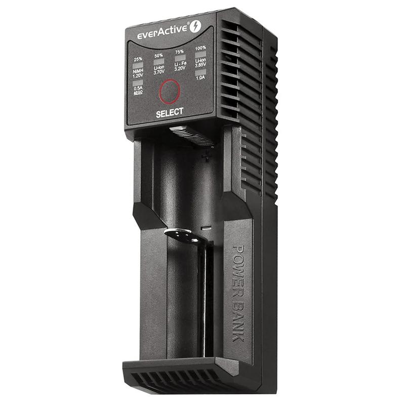 Carregador de bateria universal EverActive UC-100C USB-C com função de banco de potência para baterias cilíndricas de iões de lítio e Ni-MH