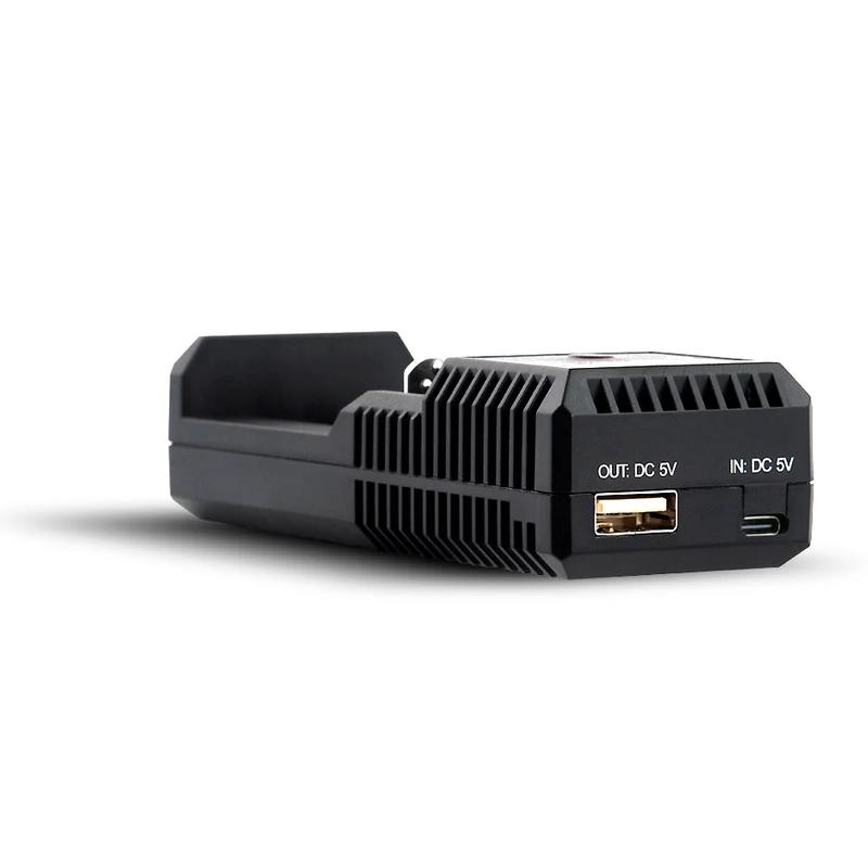 - Função de banco de potência - com qualquer pilha de iões de lítio (por exemplo, 18650, 20700, 21700), funciona como um banco de potência USB portátil (5V/1A, máx. 1,5A).