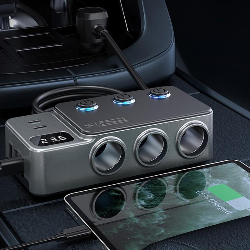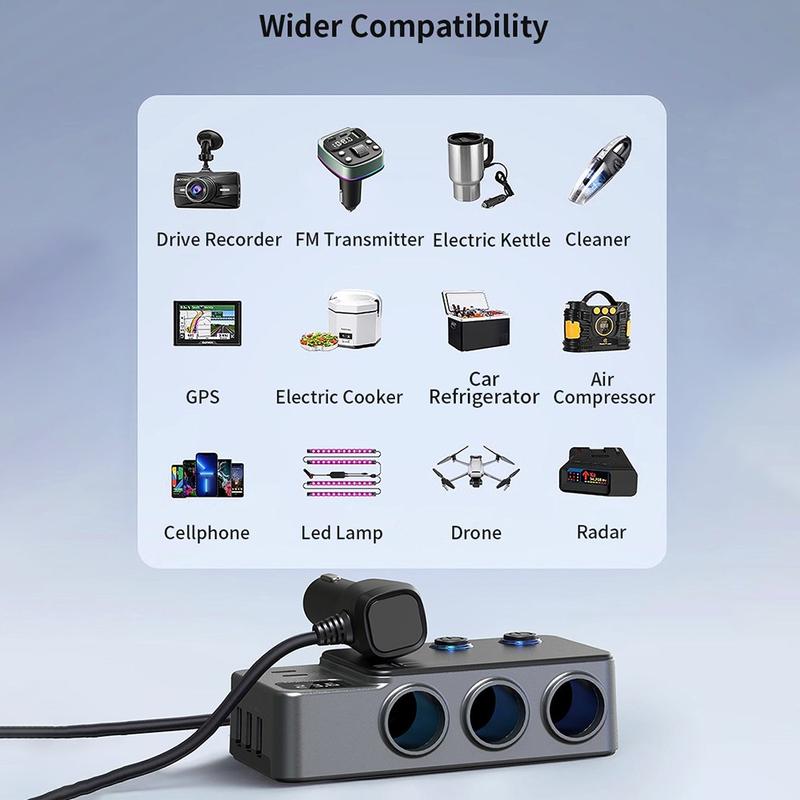 - Adaptador de isqueiro 3 em 1: Expanda a única tomada eléctrica do seu veículo para vários pontos de carregamento para maior comodidade e versatilidade.