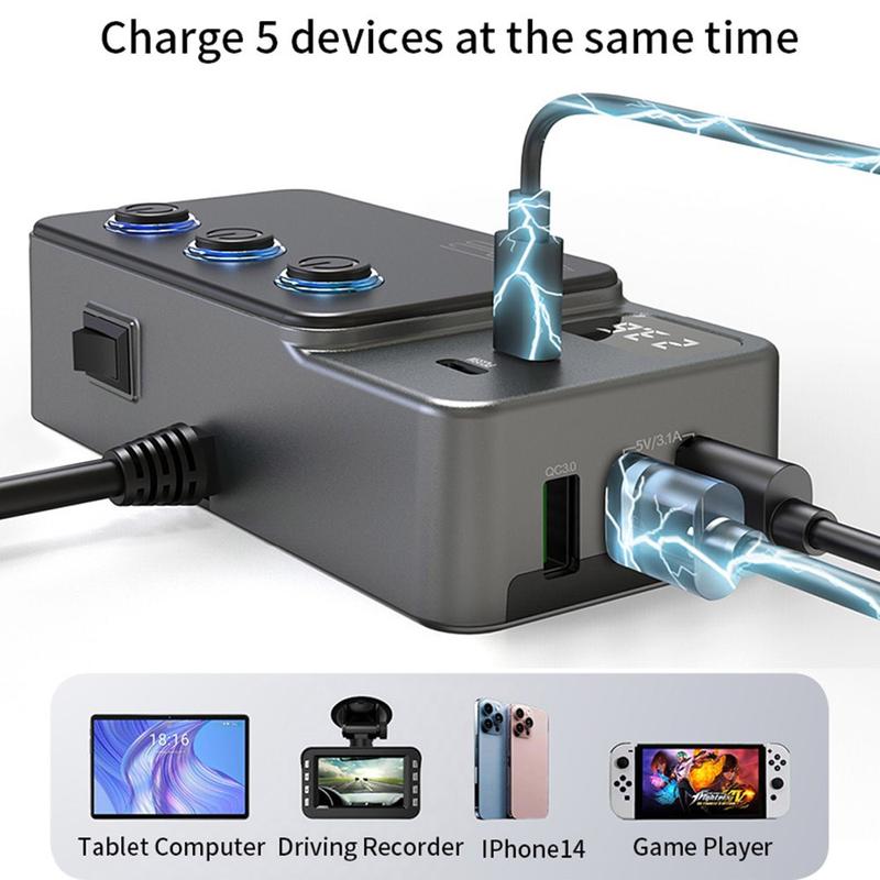 Alimente as suas viagens de carro e deslocações diárias com este carregador de automóvel de carregamento rápido PD 35W. Concebido como um adaptador de isqueiro 3 em 1, oferece 5 portas USB, proporcionando uma robusta saída de potência combinada de 120W para smartphones, tablets, câmaras de bordo e muito mais. Quer esteja a partilhar com passageiros ou a fazer malabarismos com vários dispositivos, este carregador garante que todos se mantêm ligados durante o percurso.