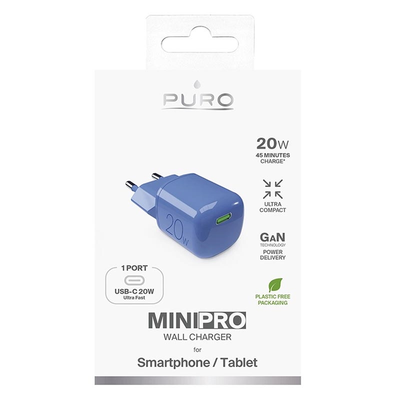 Carregador de parede Puro Minipro GaN USB-C - 20W, Power Delivery