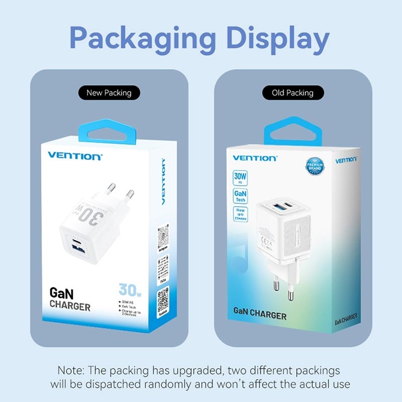 Carregador de parede rápido Vention FEQ 30W GaN - Duplo USB-C e USB-A