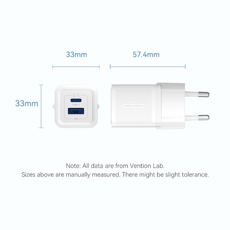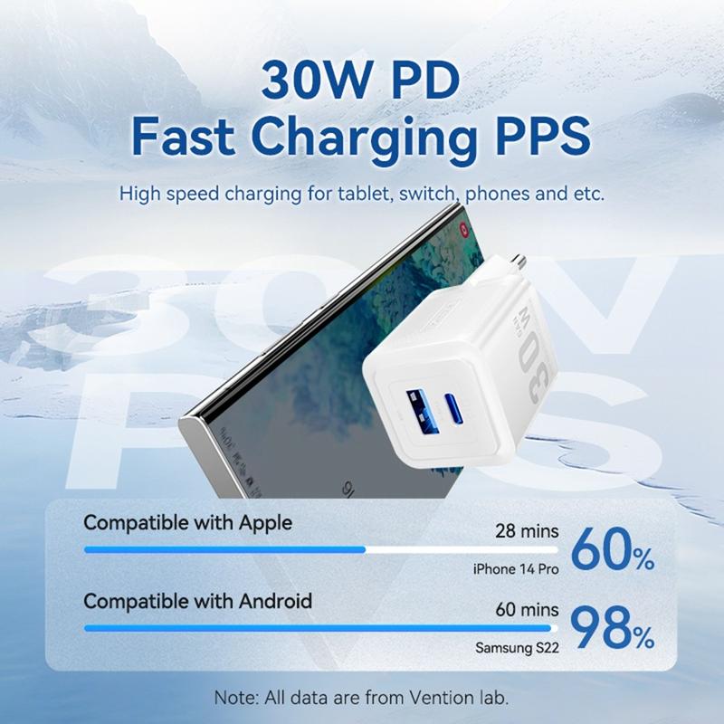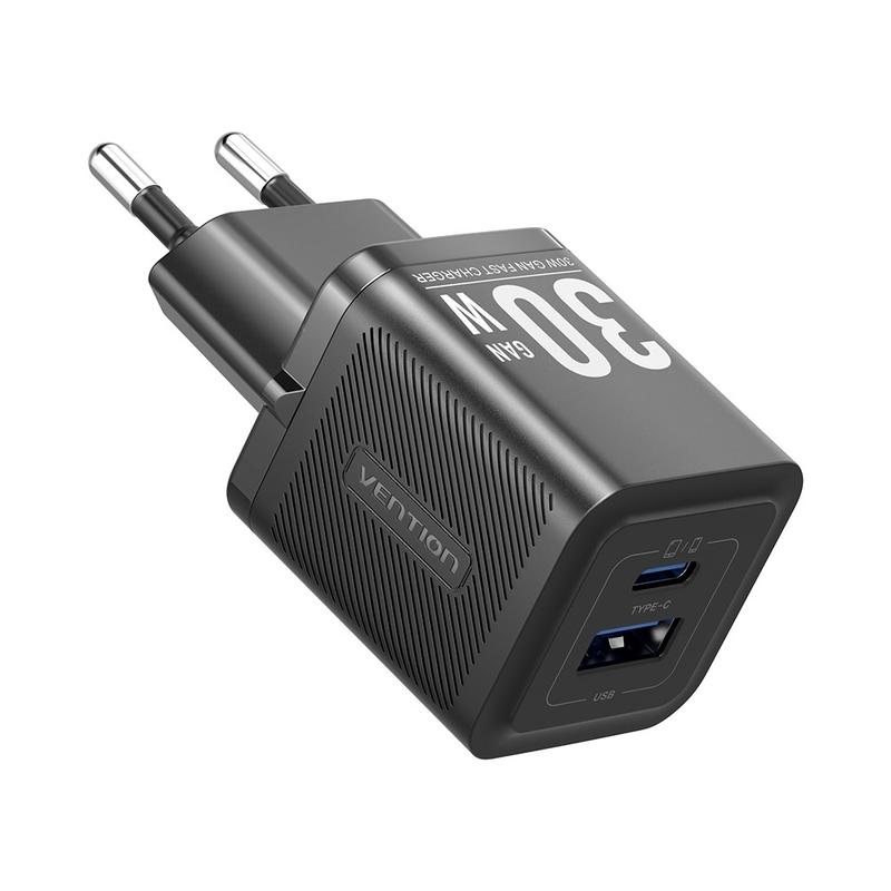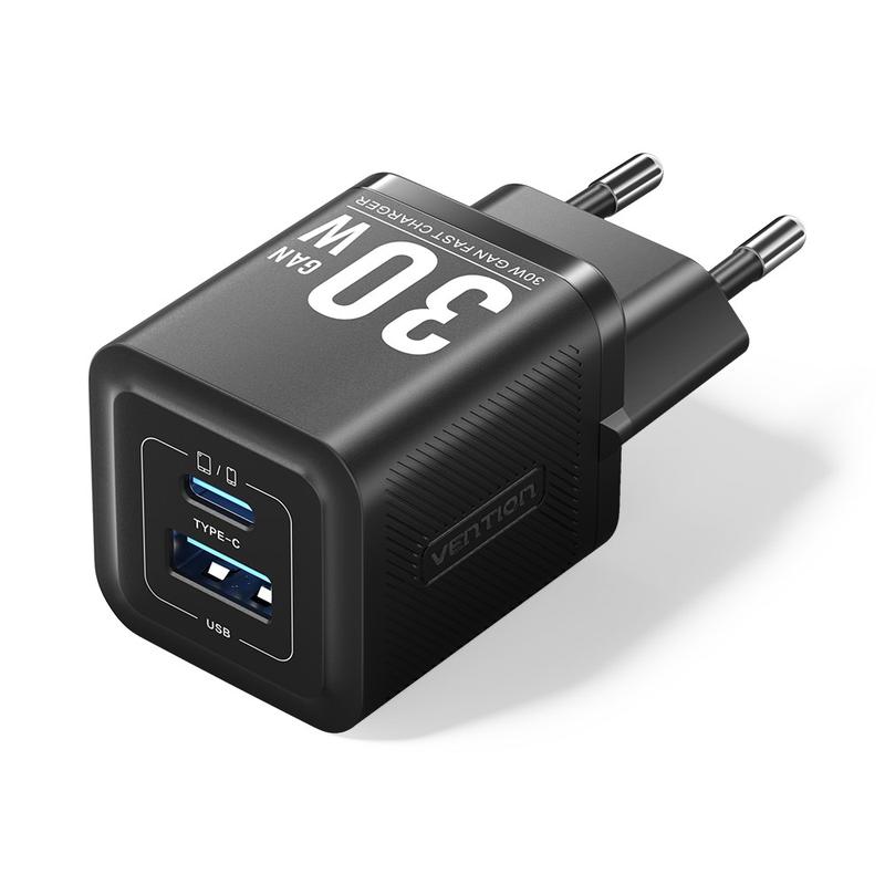 • Carregador de parede rápido Vention FEQ 30W GaN - Duplo USB-C e USB-A
