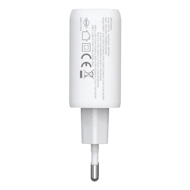 - Saída de 30 W preparada para o futuro, compatível com as novas normas de carregamento rápido e com portáteis pequenos