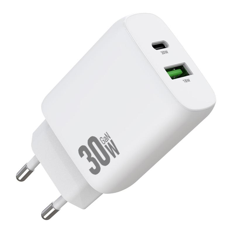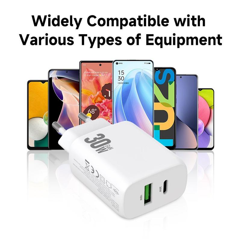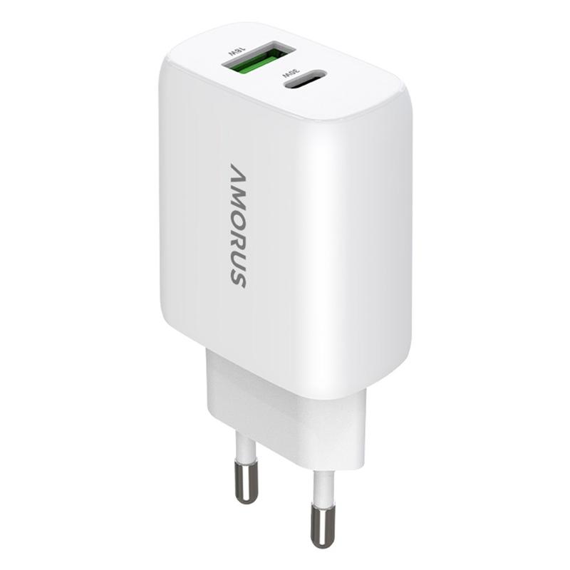 Carregador de parede rápido GaN de 30 W da AMORUS - Adaptador de parede USB-C PD e USB-A QC, ficha UE