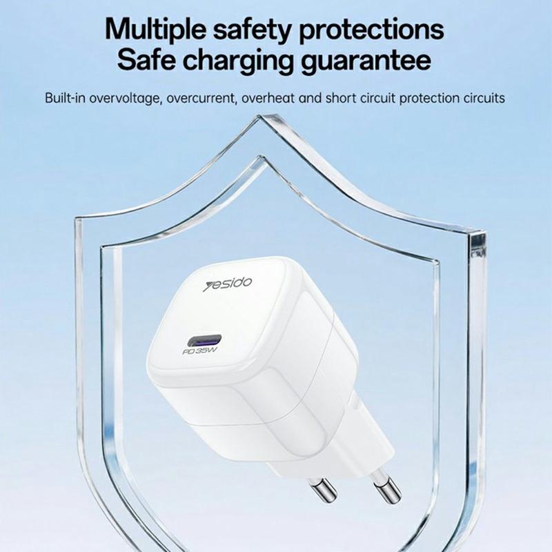 Yesido YC103 Carregador de parede USB-C PD GaN de 35W - Adaptador de alimentação compacto para carregamento rápido com proteção de segurança