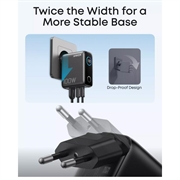 Uma das características de destaque é o ecrã inteligente, que mostra informações de carregamento em tempo real, tais como potência de saída, estado de carregamento, temperatura e distribuição de energia. Isto dá-lhe uma visão geral mais clara de como os seus dispositivos estão a ser carregados. Combinado com a ficha dobrável e o corpo compacto, o carregador é também fácil de transportar para o trabalho, viagens e uso diário.