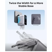 Uma das características de destaque é o ecrã inteligente, que mostra informações de carregamento em tempo real, tais como potência de saída, estado de carregamento, temperatura e distribuição de energia. Isto dá-lhe uma visão geral mais clara de como os seus dispositivos estão a ser carregados. Combinado com a ficha dobrável e o corpo compacto, o carregador é também fácil de transportar para o trabalho, viagens e uso diário.