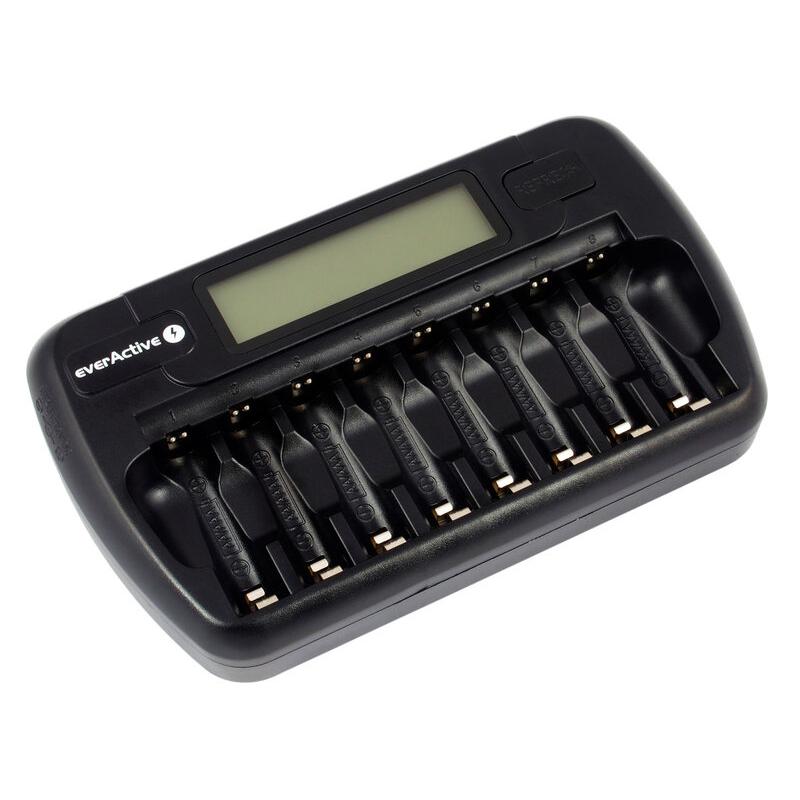 O EverActive NC-800 tem até 8 canais de carregamento independentes para as baterias NI-MH nos tamanhos R6/AA ou R03/AAA, cada célula é carregada individualmente. Permite-lhe carregar 8 baterias R6/AA ou R03/AAA em qualquer configuração/combinação, de qualquer capacidade, de qualquer fabricante.