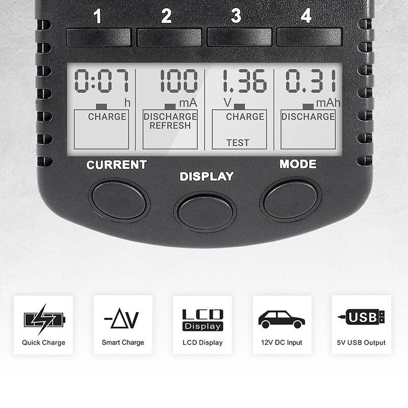 - Quatro modos de funcionamento: carga, descarga, atualização e teste de capacidade apresentado em mAh