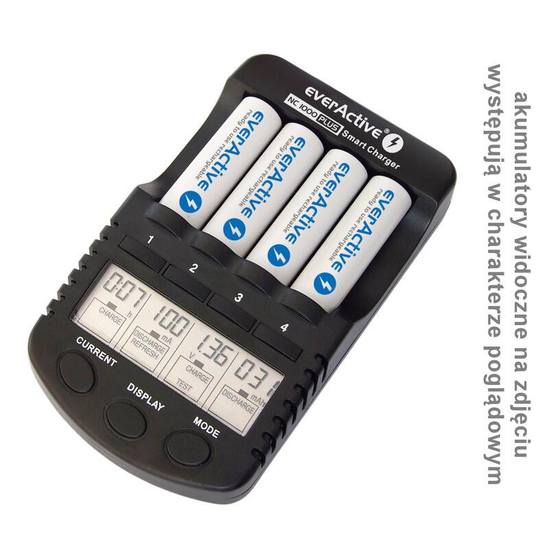 - Carregador de pilhas EverActive NC-1000 Plus Ni-MH/Ni-Cd - 4x AAA/AA